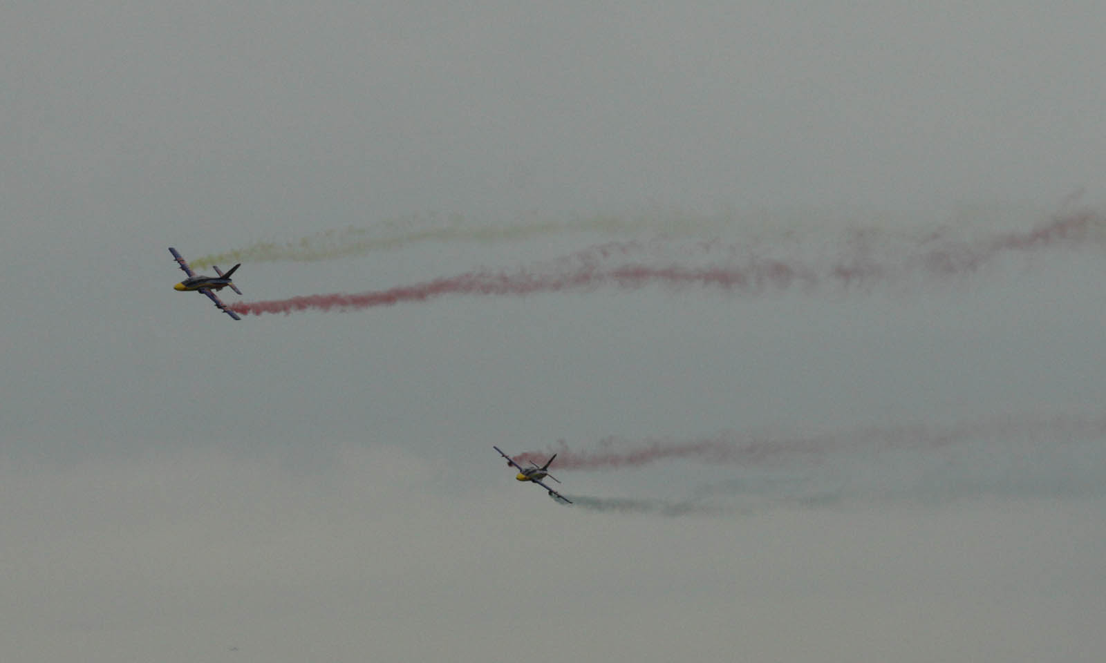 Wir haben sie am Sonntag nochmal gesehen, bei deutlich besserem Wetter. Der eine ist direkt nach dem Katapultstart direkt ausgegangen und im Feld gelandet und fing auch gleich an zu brennen ... Da konnte man die Crew aber rennen sehen