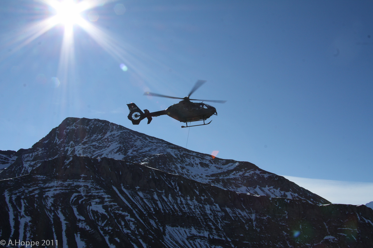 Die haben alles per Hubschrauber auf den Berg gebracht, vom Dixie-Klo bis zum Kühlschrank