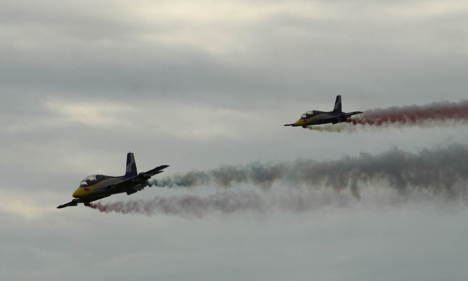 Wir haben sie am Sonntag nochmal gesehen, bei deutlich besserem Wetter. Der eine ist direkt nach dem Katapultstart direkt ausgegangen und im Feld gelandet und fing auch gleich an zu brennen ... Da konnte man die Crew aber rennen sehen