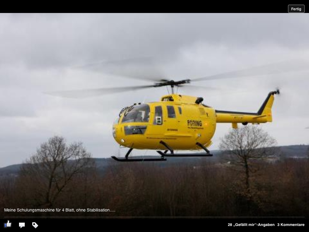 Mit Bernd P. habe ich auch gesprochen, dass ich seine Turbinen BO105 ohne Stabilisierung mit L/S in einer Trainerstunde fliegen werde. Freu mich schon drauf
