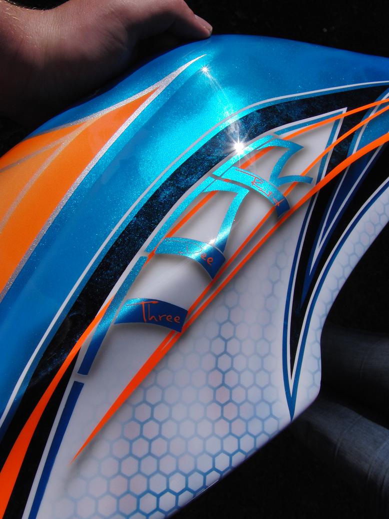 Wirklich wieder eine super Arbeit. Alleine die Details wie die TDR Buchstaben mit dem gezackten neonorangenen Streifen, der meherer Zentimeter über der Haube zu schweben scheint ...