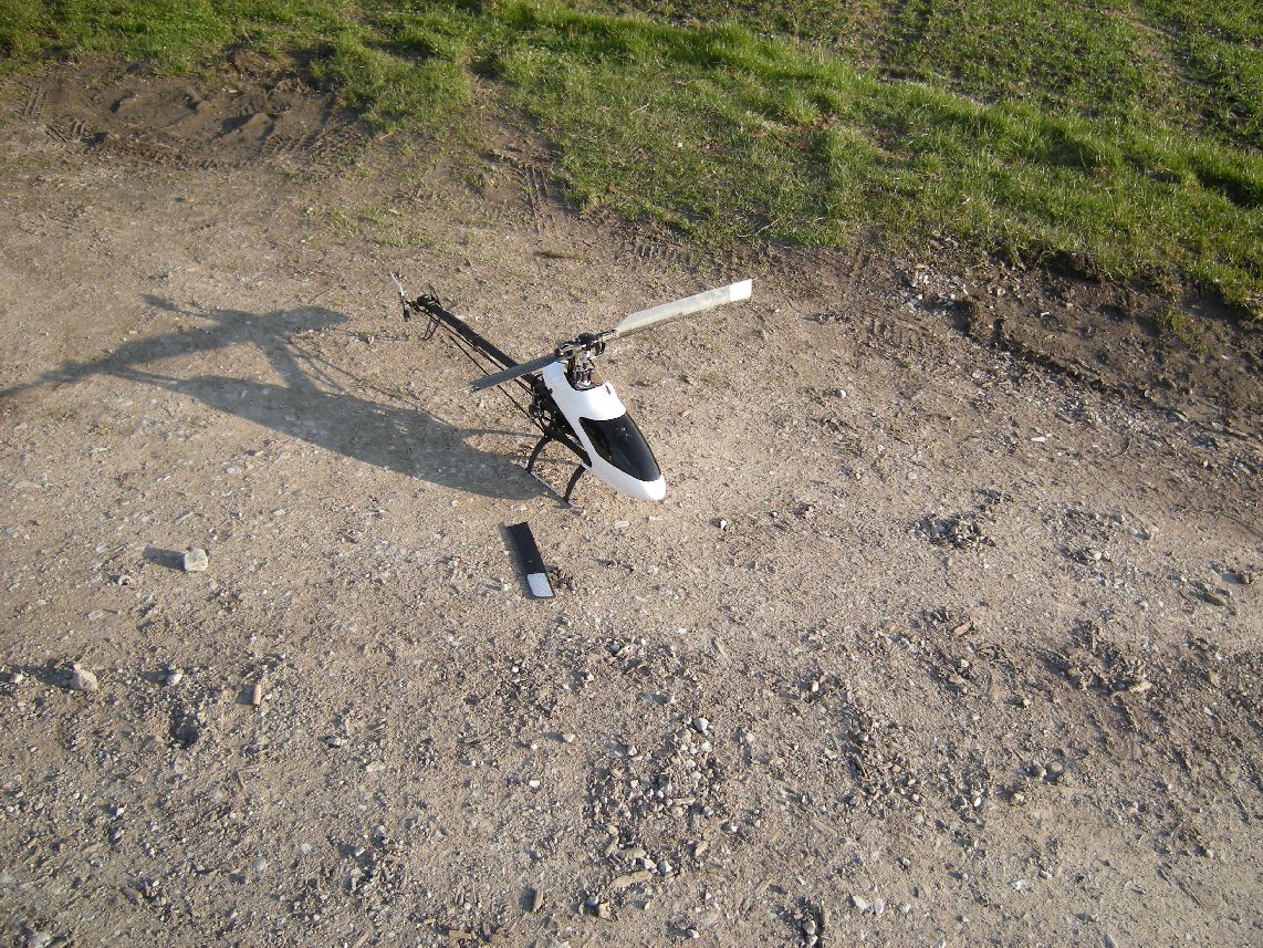 immerhin 42 Flüge nicht runtergekommen (neuer Rekord)... nach Rollen und Loopings sollte heute das Rückenschweben geübt werden... Am Simulator ist ja alles so schön einfach.. Und dann hatte ich irgendwie einen total Aussetzer... Mit etwas mehr negativ Pitch wäre nichts passiert... so gings inverted in den Acker.. Schadensbilanz kA.. Blätter, Heckrohr, Heckrotor, HZR und ein paar abgerissene Kugelpfannen...